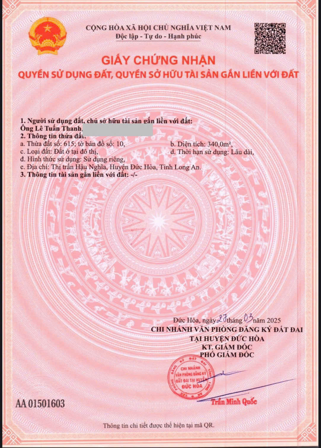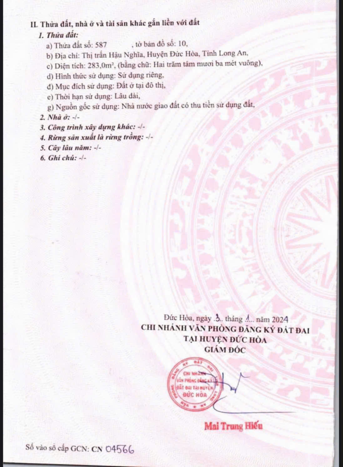- Vị trí ĐẮC ĐỊA TẠI : Thị Trấn Hậu Nghĩa- Huyện Đức Hòa - Tỉnh Long An
