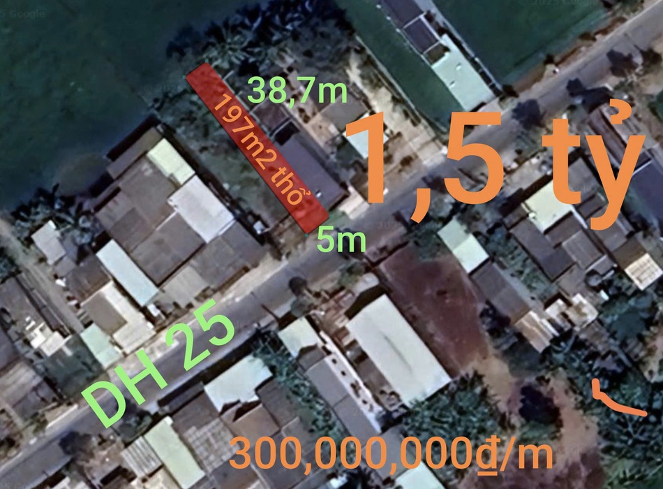 Bán đất xã vàm cỏ mặt tiền đường dh25 giá 1,5 tỷ
