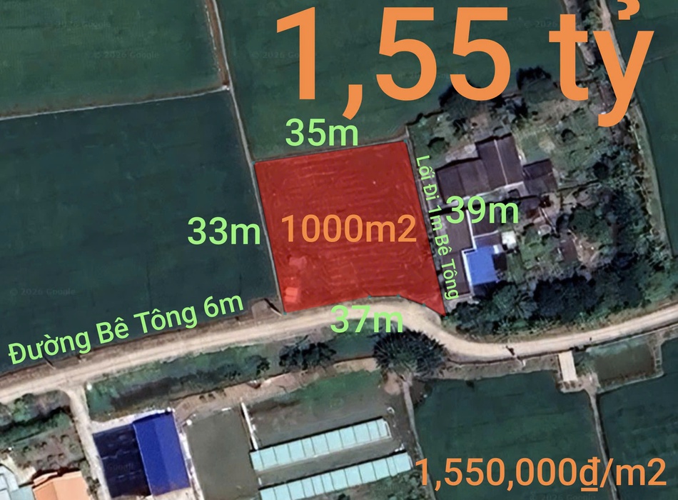 Bán lô đất lúa chuyển thổ đường bê tông 6m giá 1,55 tỷ