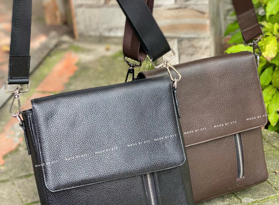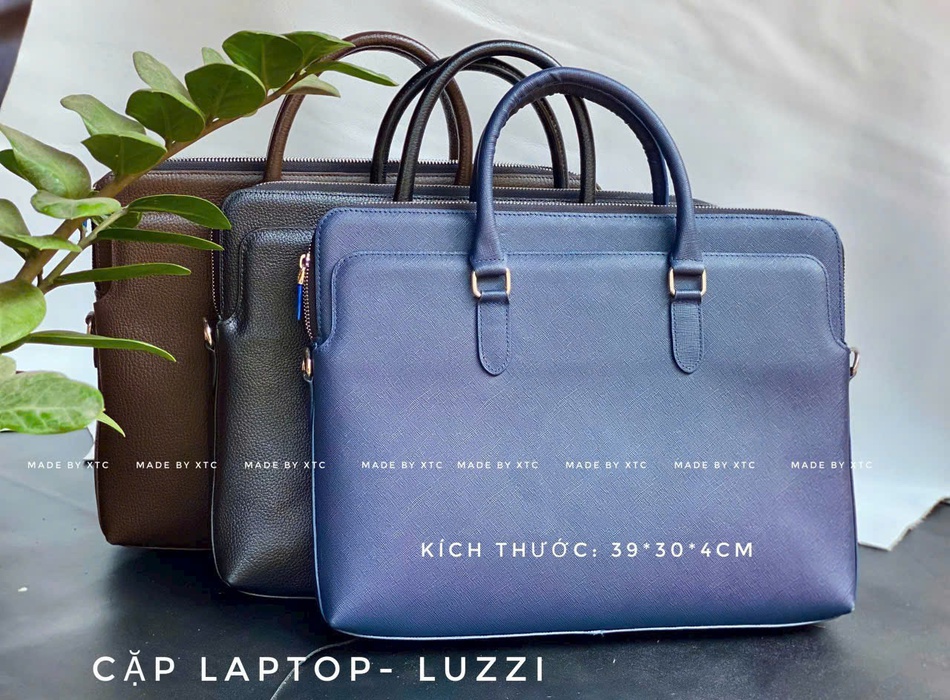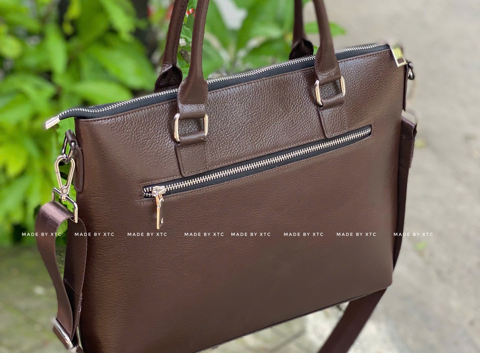 • Túi xách – cặp da công sở: form cứng cáp, đường may tỉ mỉ, sử dụng da bò nguyên miếng.