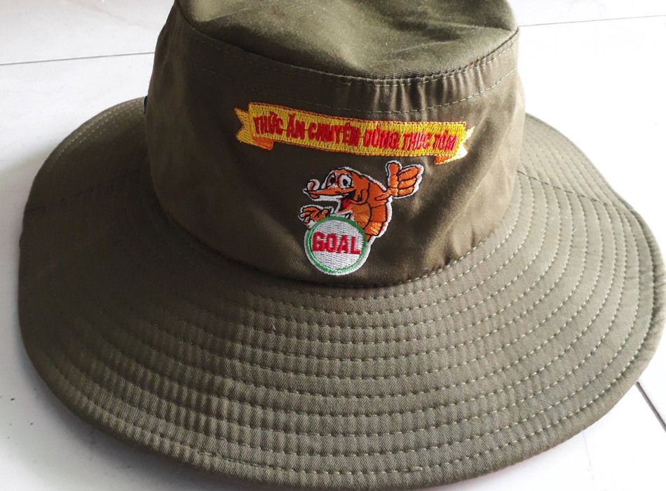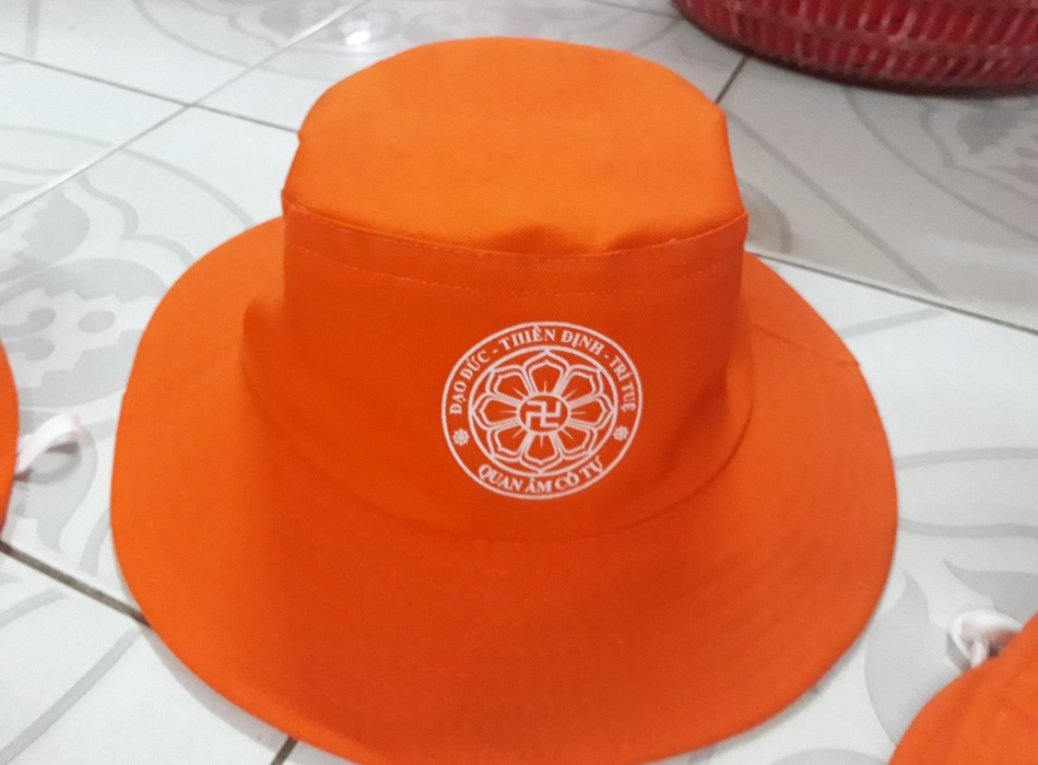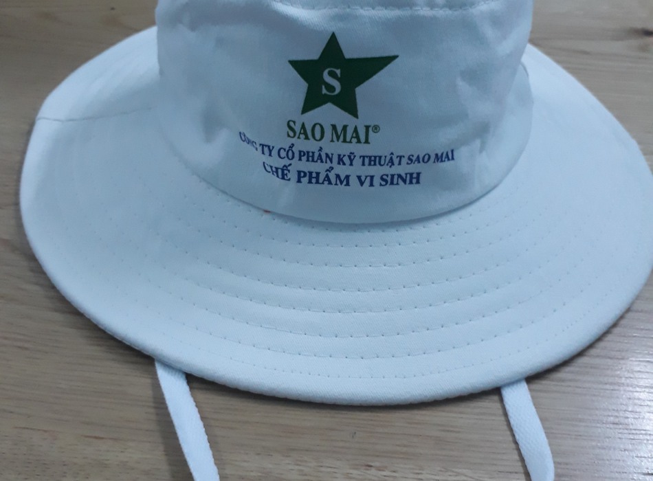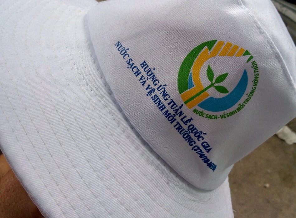 May mũ tai bèo tại Quảng Nam có in ấn thông tin.