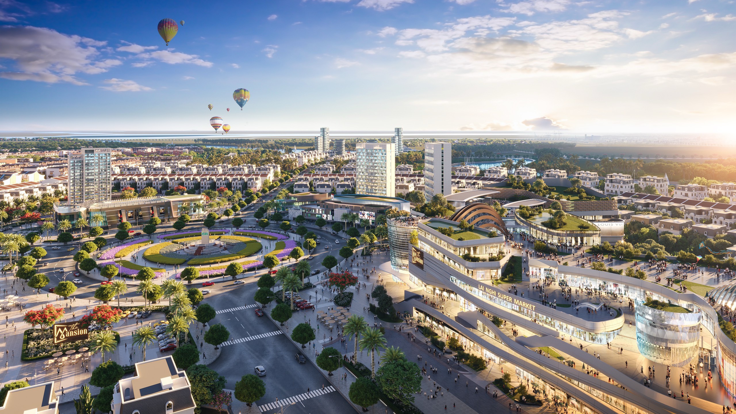 - Hệ thống tiện ích đẳng cấp: trung tâm vui chơi – mua sắm, Trung tâm giải trí 3D Hàn Quốc, công viên cây xanh, chợ Lai Nghi,...