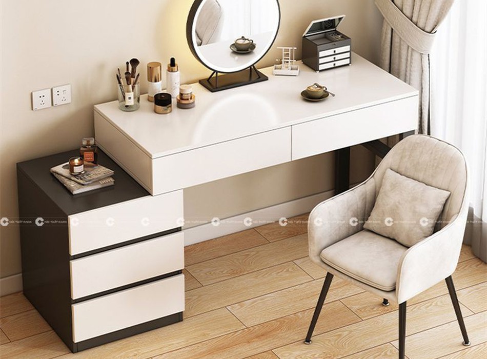 Thiết kế tối giản nhưng tinh tế, mẫu bàn phấn này không chỉ đáp ứng nhu cầu sử dụng hằng ngày. Mà còn trở thành điểm nhấn nổi bật, mang lại sự tiện nghi và phong cách cho căn phòng.