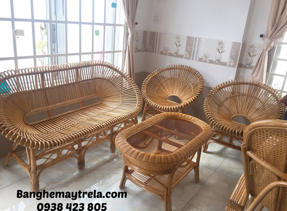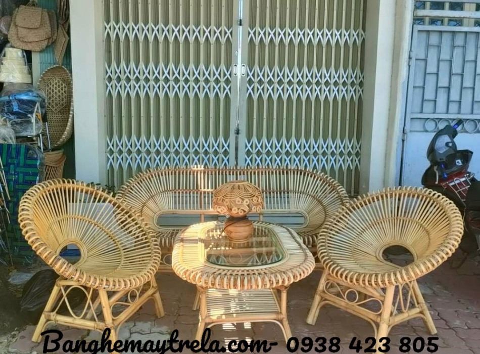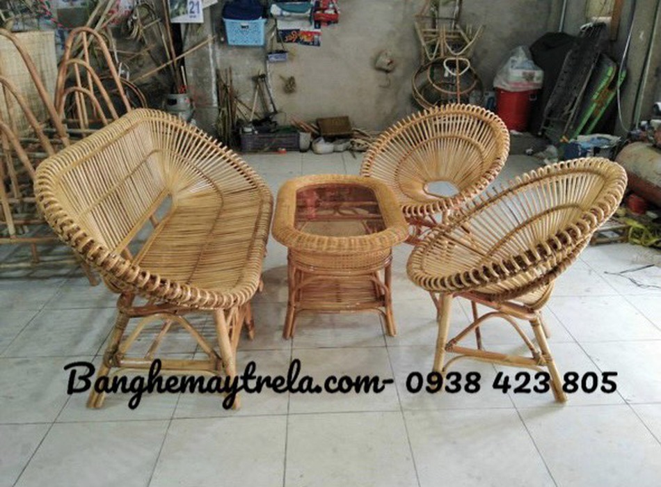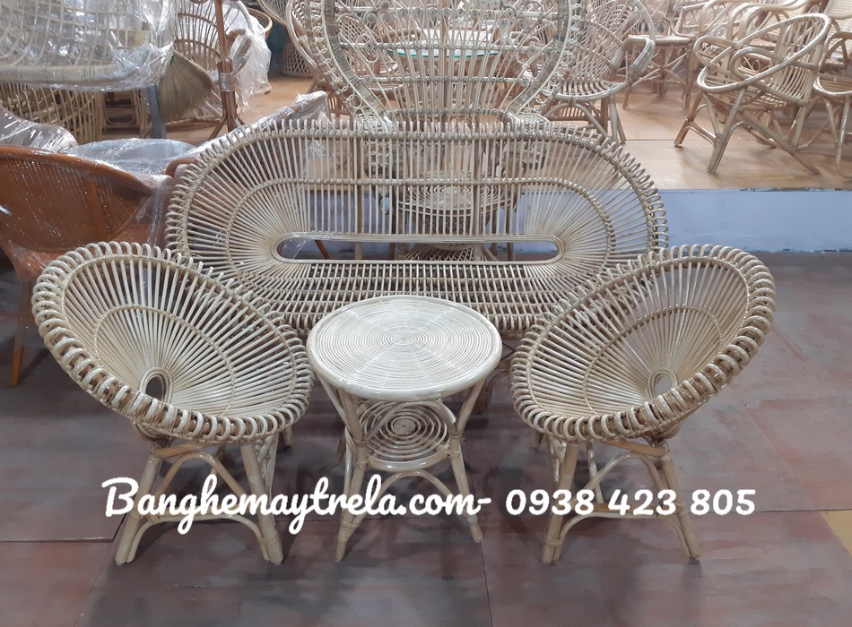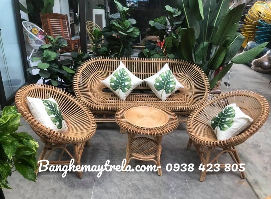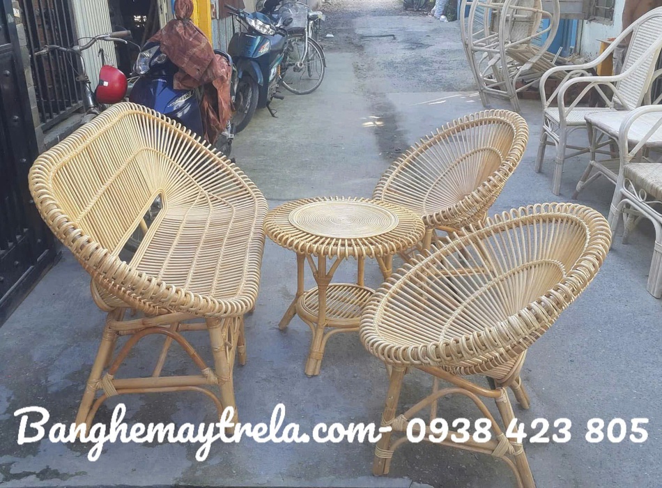 Bàn ghế mây nhỏ gọn cánh sen