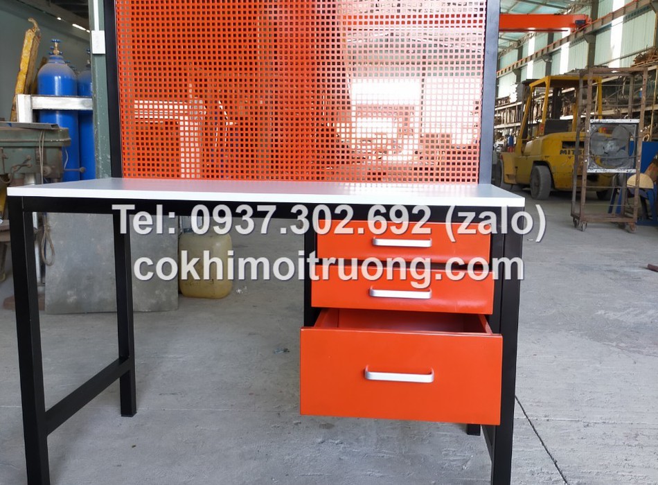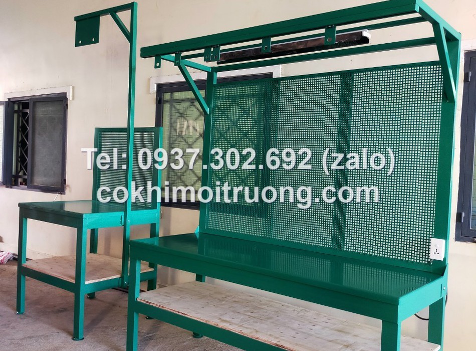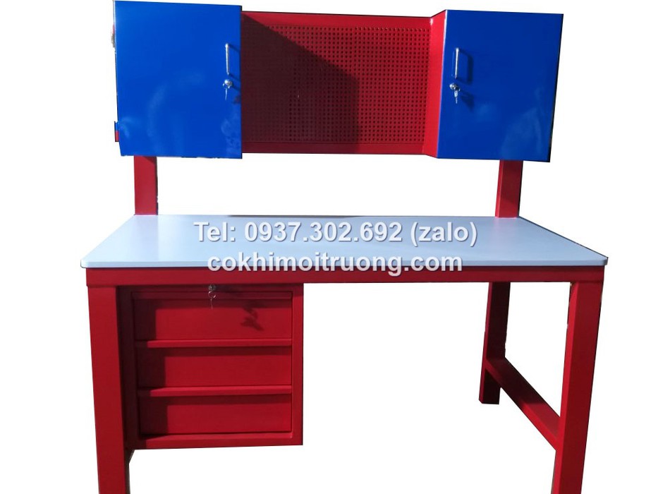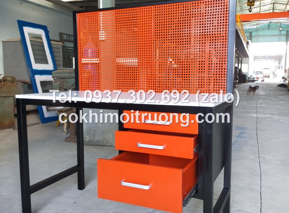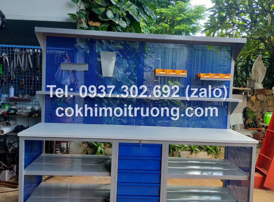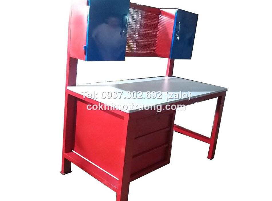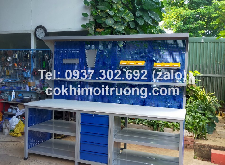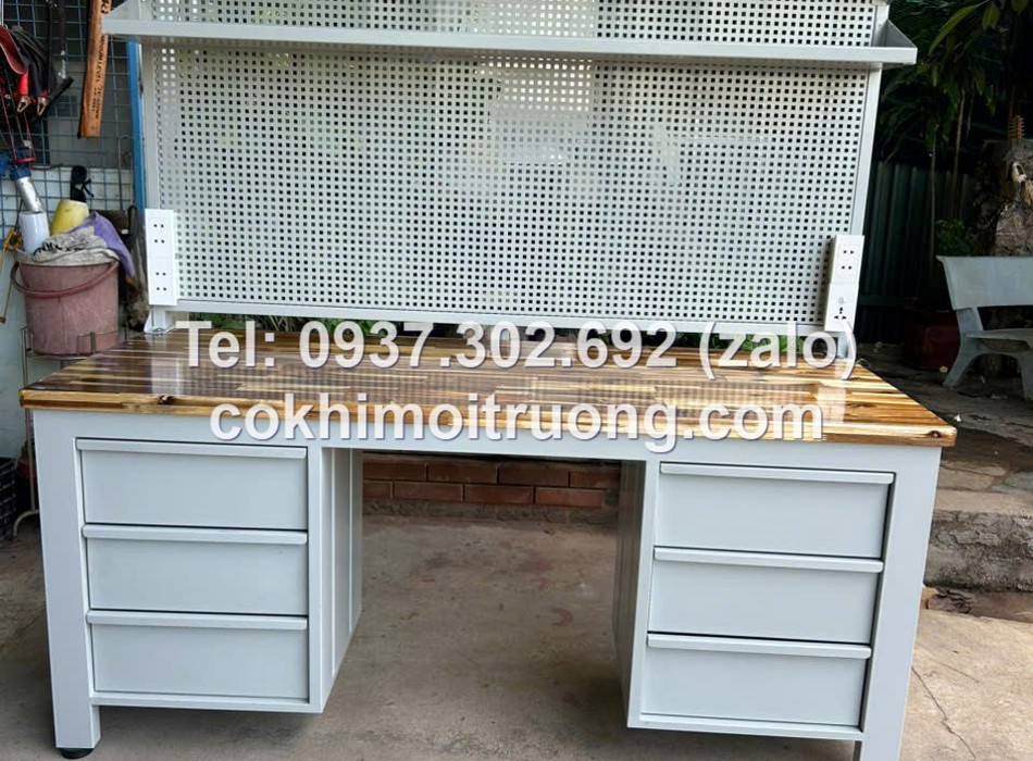 Bàn nguội cơ khí mặt gỗ kết hợp bảng treo