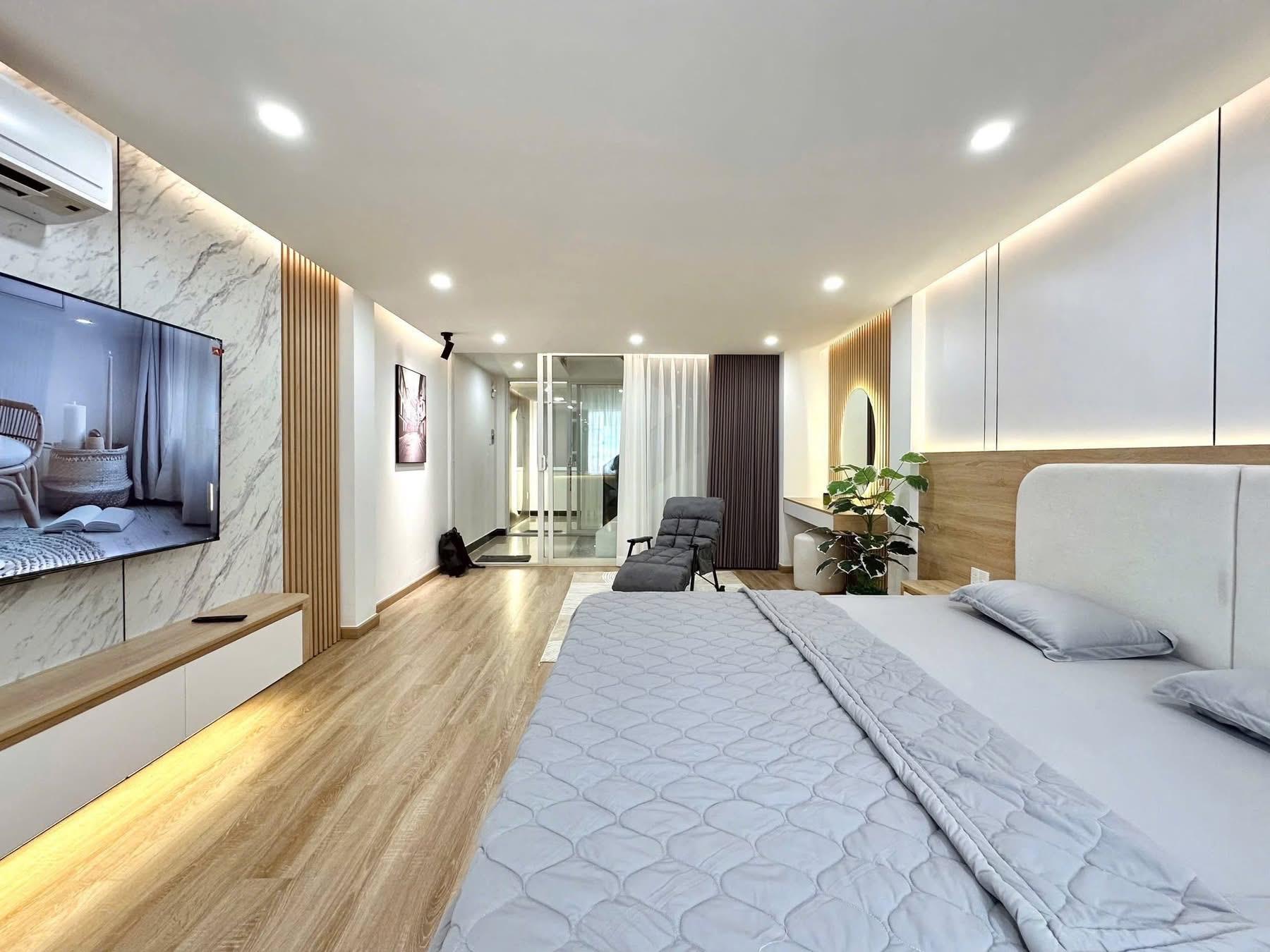 - Kết cấu: 1 trệt, 2 lầu, sân thượng, gồm 5 phòng ngủ, 3 WC. Nhà mới cứng, đẹp, thiết kế thoáng sáng, vào ở ngay.