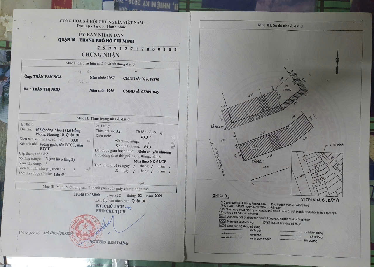 Bán nhà tập thể tầng 2 ngay mặt tiền 638 Lê Hồng Phong Q10 , gần vòng xoay ngã 7 , bệnh viện nhi đồng 1 , trường học ...