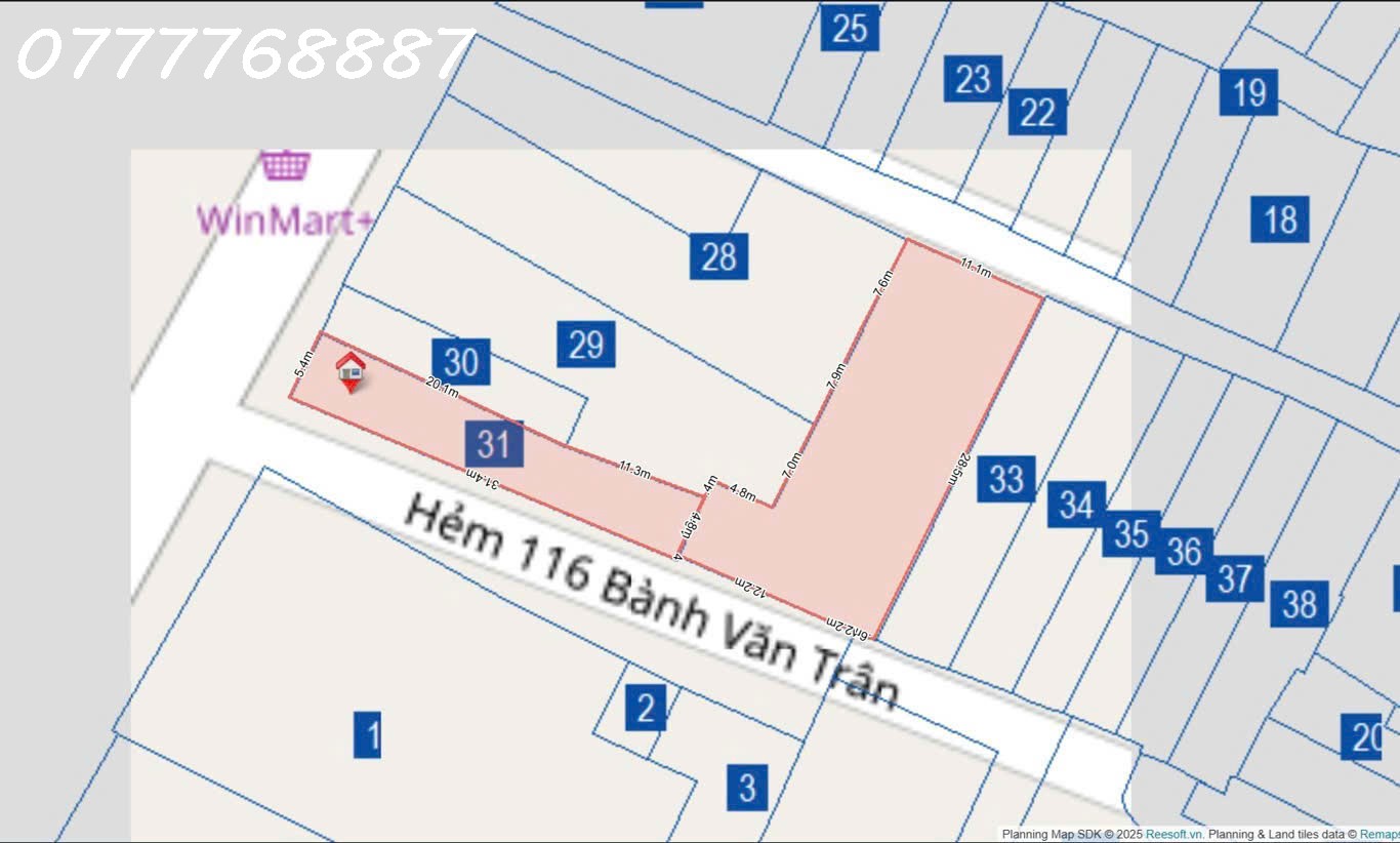 - Diện tích: 5,25m X  41,5m, NH 28,5 m, tổng diện tích công nhận là 481,8m² (có 2 sổ riêng).