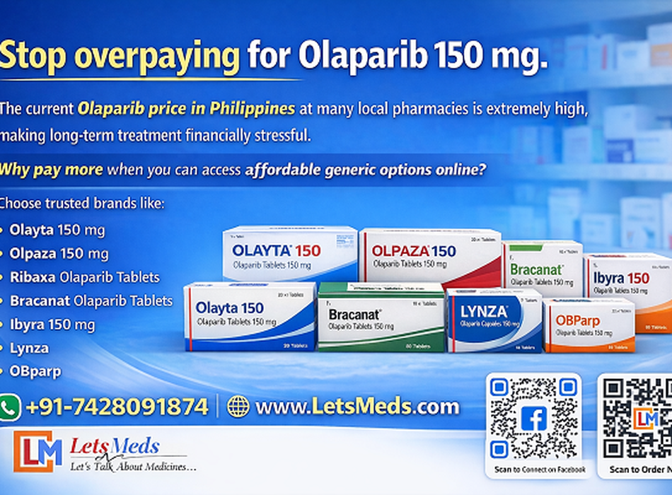 Don't let the high cost of Olaparib 150mg have an effect on your bank account. Olaparib has a high price right now in the Philippines, meaning there will be a big difference between how much Olaparib costs at a local pharmaceutical store versus online. You can order the Generic Version of Olaparib, Like Olayta 150mg, Olpaza 150mg, Ribaxa Olaparib Tablets, Bracanat Olaparib Tablets, Ibyra 150mg, Lynza, or OBparp through LetsMeds.com. You'll receive your order quickly anywhere in the Philippines and also through secure delivery to: Thailand, Malaysia, United Arab Emirates, Singapore, and many other places worldwide. For order you can call/WhatsApp today at: +91-7428091874 or visit: www.letsmeds.com
