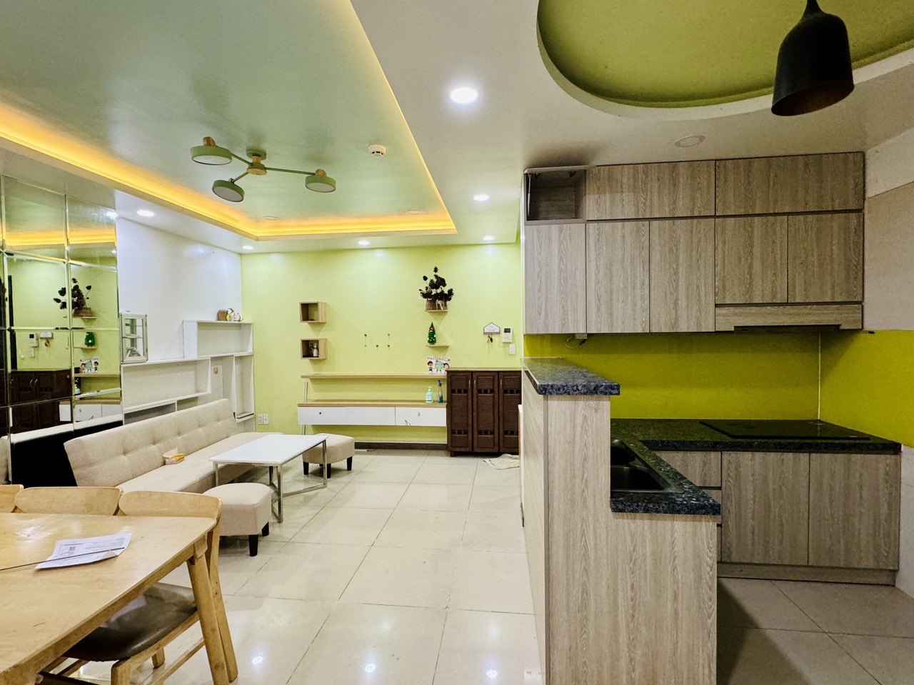 - Nội thất: sofa, 2 tủ giày, bàn ăn, 2 giường tủ, bàn học, 1 máy lạnh, 2 máy nước nóng, bộ tủ bếp, rèm…dọn vào ở ngay, thoáng mát.