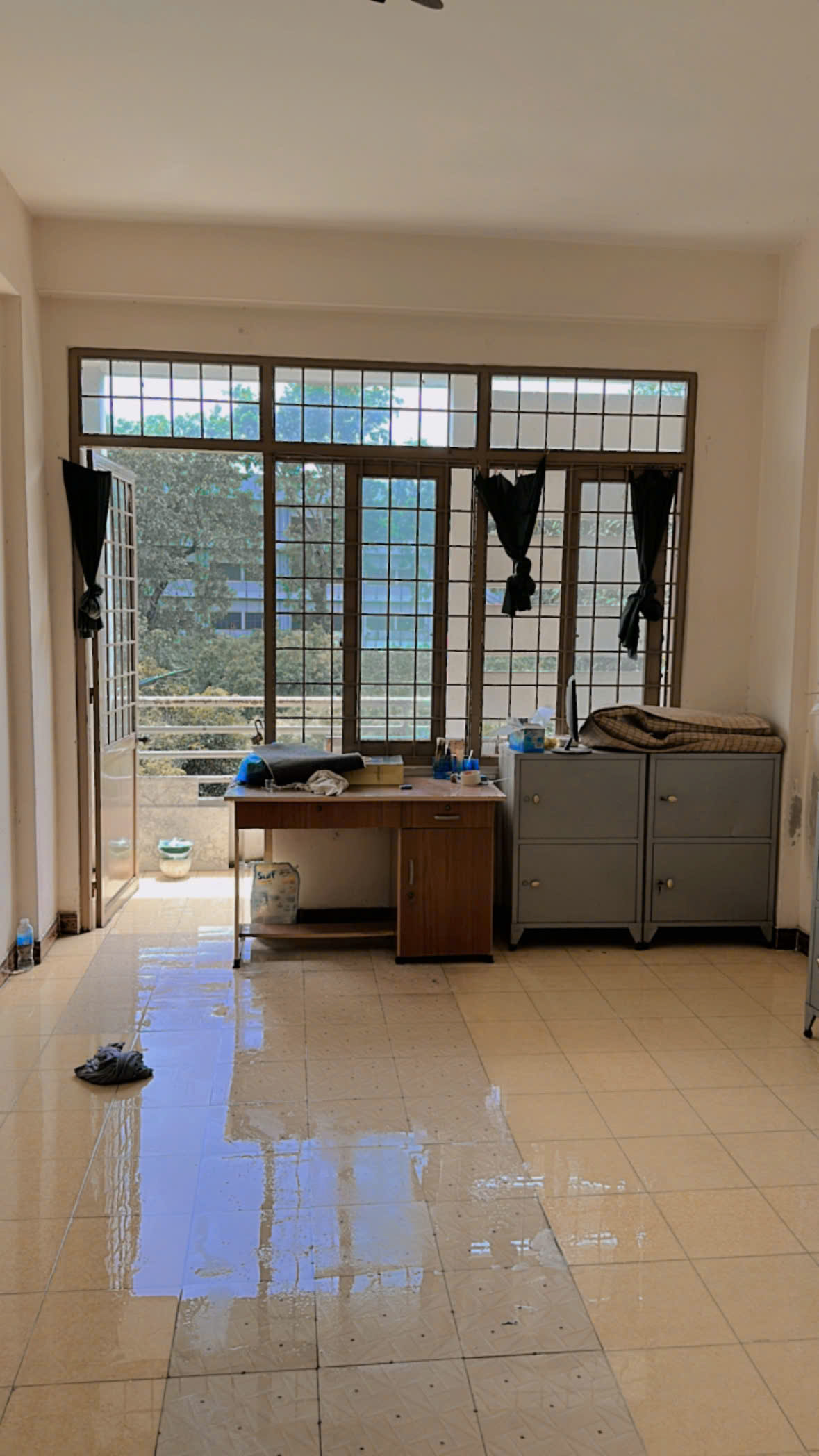 * Trang bị sẵn: Bàn học, bàn ghế, 3 tủ đồ lớn, Kệ sách, Tủ lạnh, Lò vi sóng
