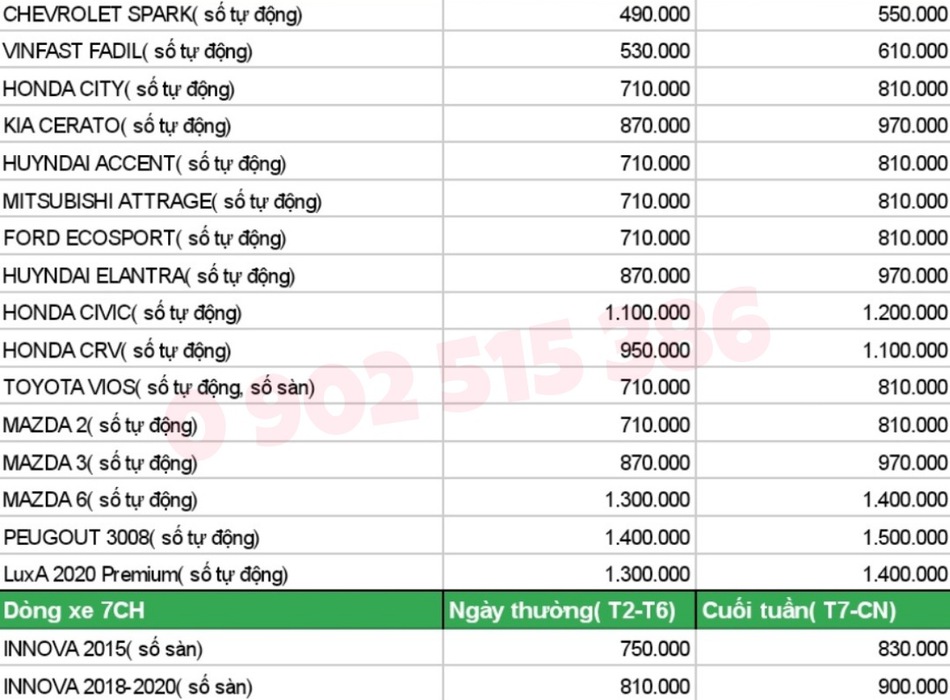 -Giá thuê xe là giá chốt, không phát sinh thêm các chi phí khác