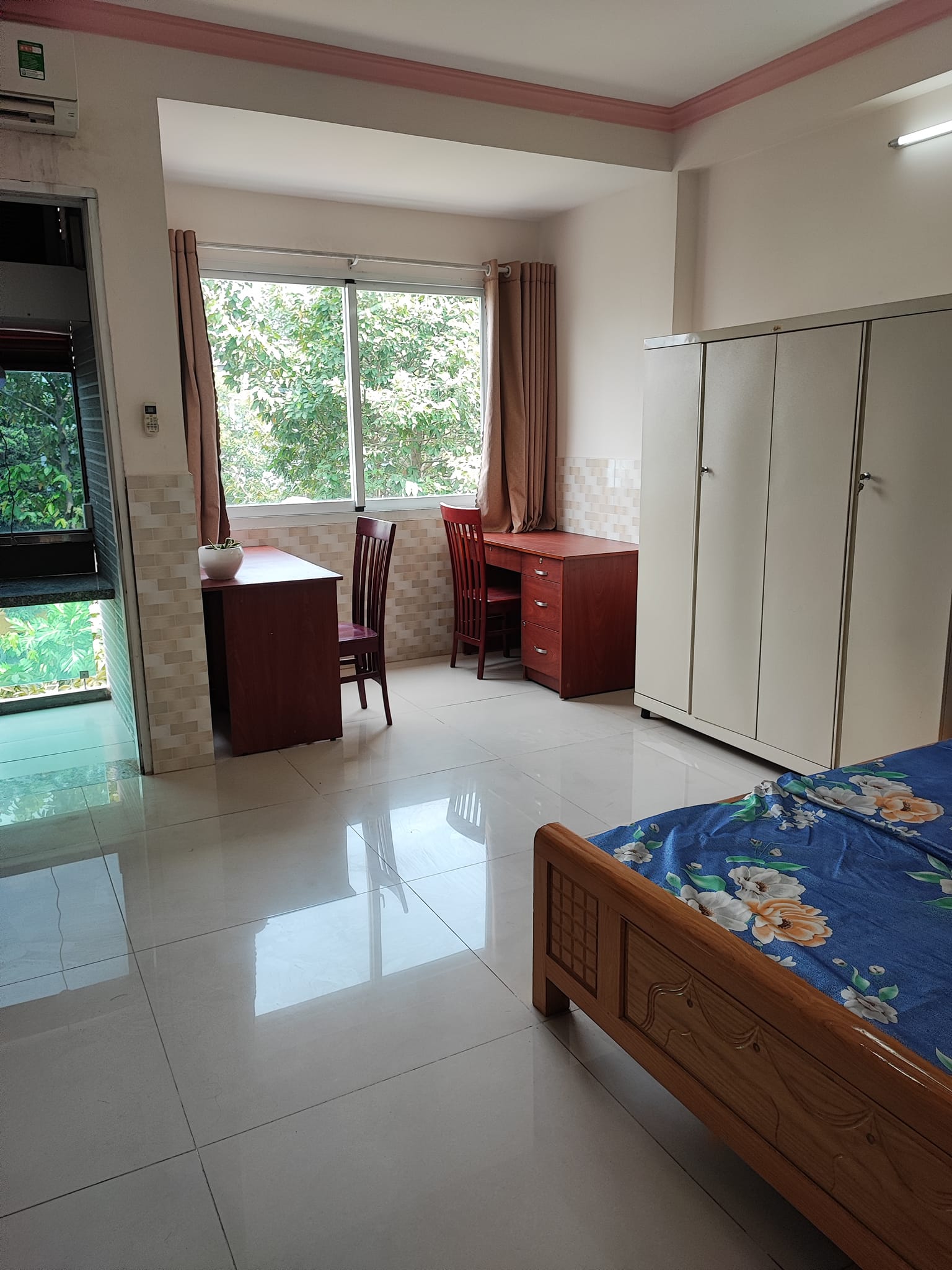 3. Kết cấu: toalet riêng, bếp, nội thất cơ bản: giường, tủ quần áo, kệ bếp, bàn học, bàn làm việc, máy lạnh, máy giặt chung và sân phơi rộng rãi trên lầu 6, có sân thượng thoáng mát hóng gió, nhà có thang máy, cửa vân tay, giờ giấc tự do
