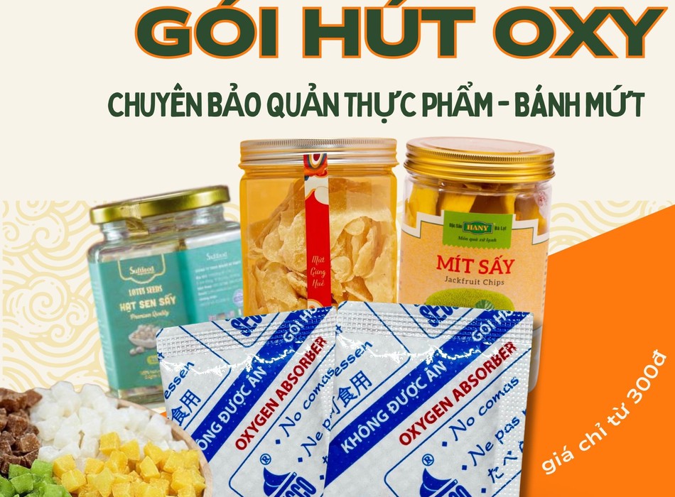 Gói hút oxy sử dụng cơ chế hấp thụ hoàn toàn lượng oxy còn lại trong bao bì sau khi đóng gói. Khi môi trường bên trong đạt mức 0% oxy, nấm mốc và vi khuẩn không thể tồn tại, giúp bánh mứt được bảo quản tốt hơn.