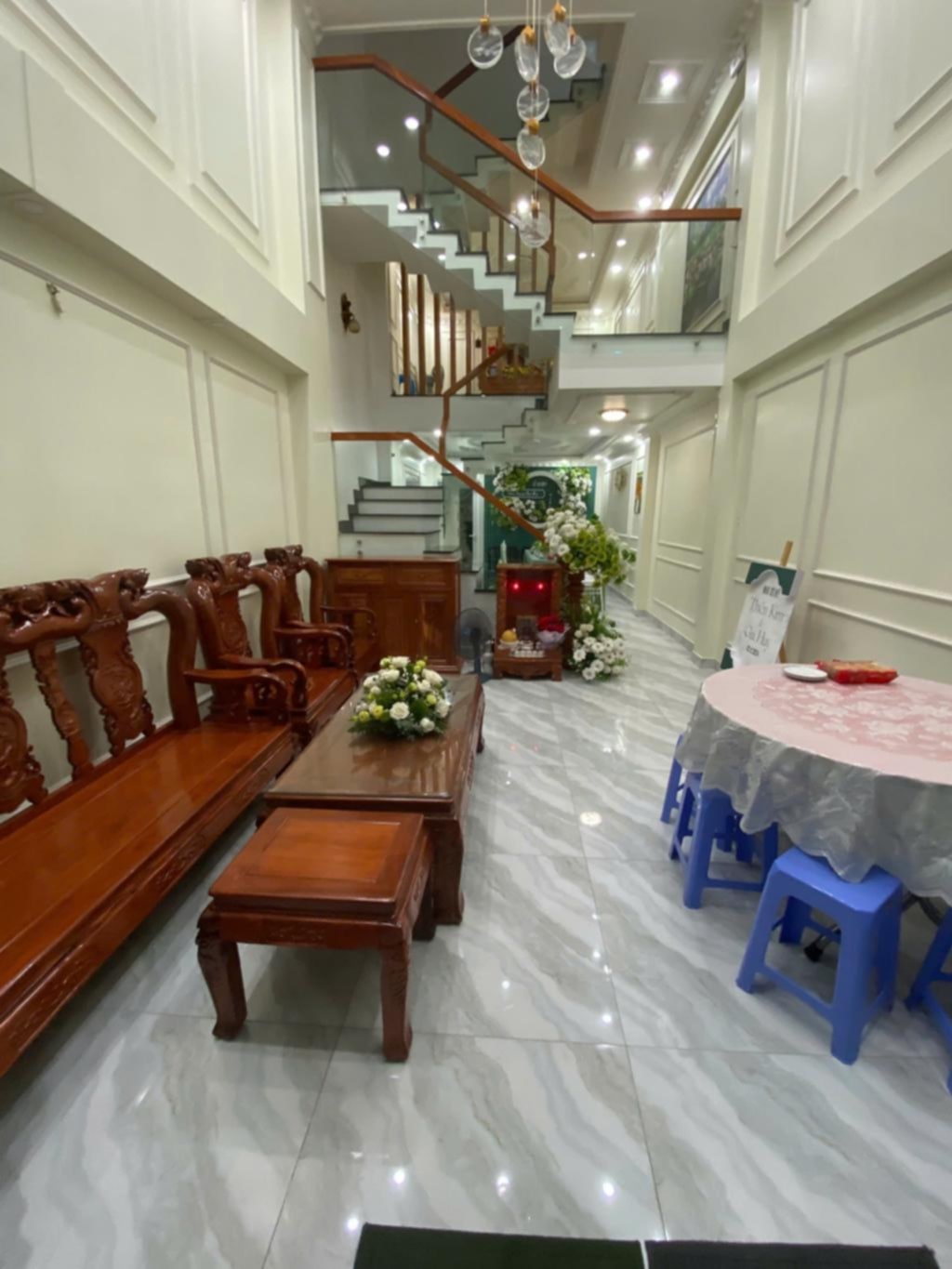 + Kết cấu: 1 trệt, 1 lửng, 2 lầu, sân thượng gồm: 4 phòng ngủ, 5WC, 1 phòng bếp, 1 phòng khách, 1 phòng thờ, 1 phòng giặt, sân thượng trước và sau, ban công.