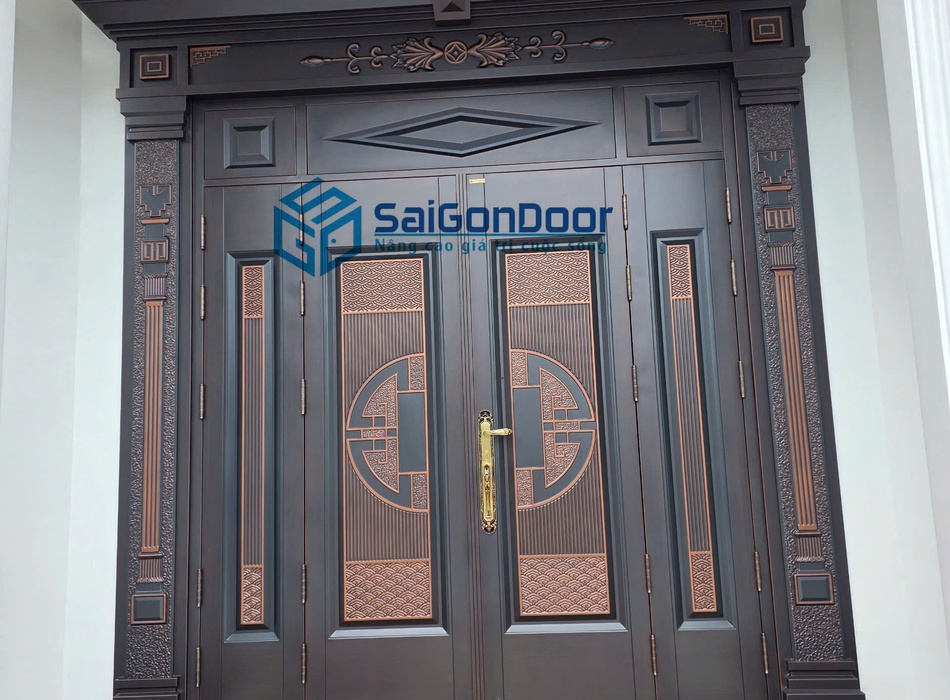 Tiếp tục hoàn thiện một công trình với mẫu cửa thép vân gỗ 2 cánh – thiết kế cân đối, hiện đại, phù hợp cho cửa chính nhà phố, biệt thự ✨