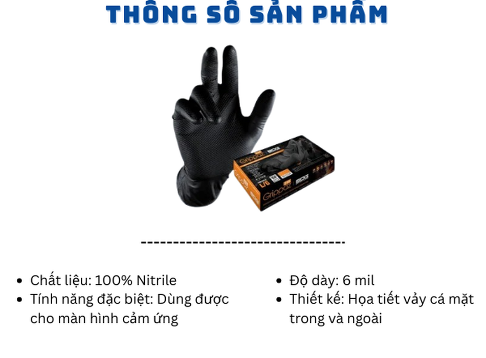 ✅ Êm ái & Lành tính: Thiết kế Ergonomic ôm sát giúp giảm mỏi cơ tay khi làm việc lâu. 100% Nitrile không chứa protein cao su, loại bỏ hoàn toàn nguy cơ dị ứng da.