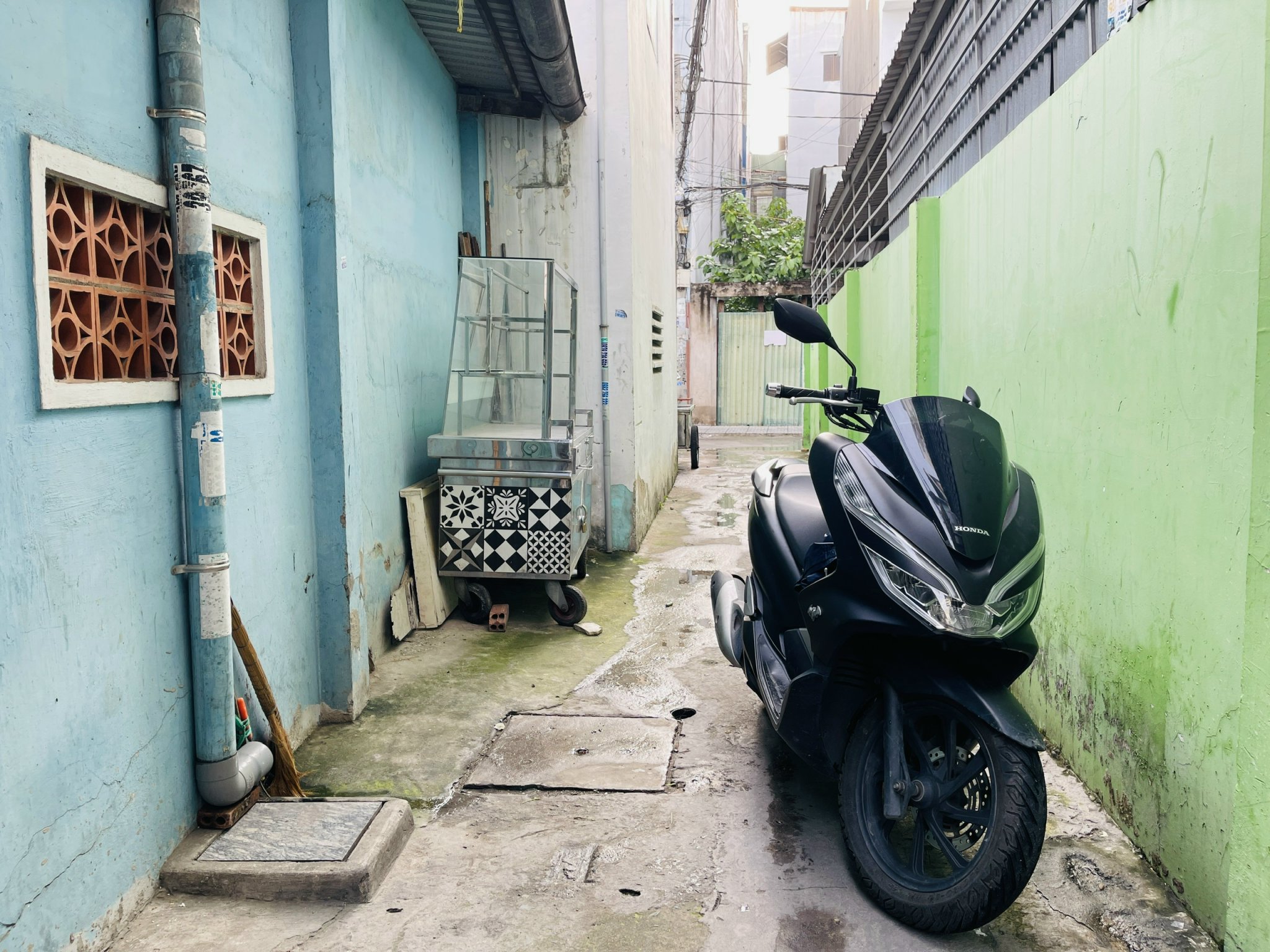 Hẻm sạch, thẳng, cách ô tô vài bước chân.