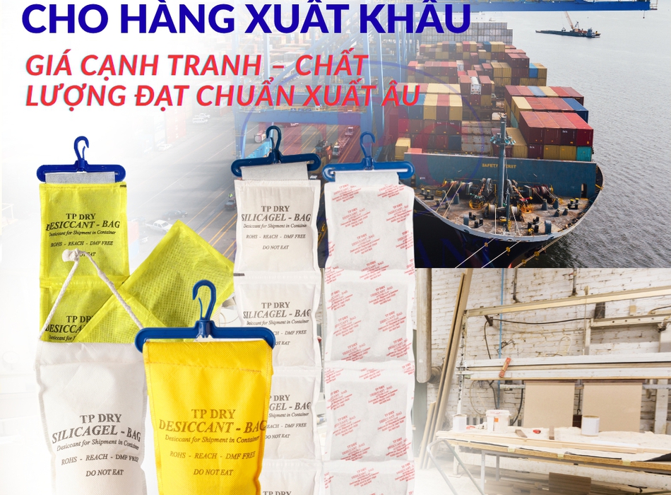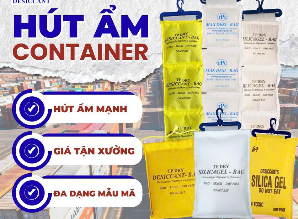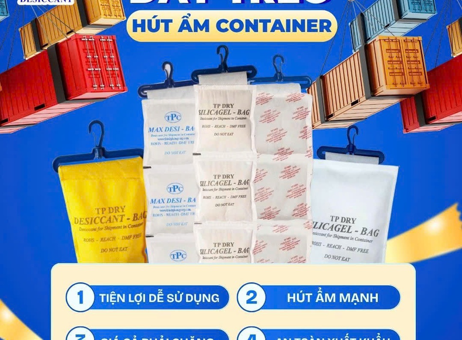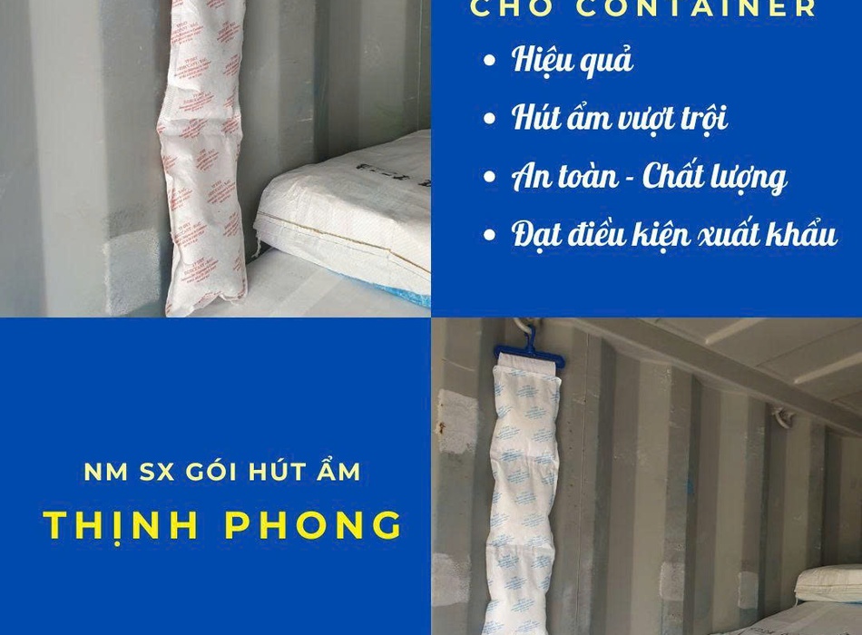 Giúp hấp thụ hơi ẩm trong không gian container, giảm tình trạng ngưng tụ nước khi container phải vận chuyển xa hoặc kéo dài thời gian trên biển.
