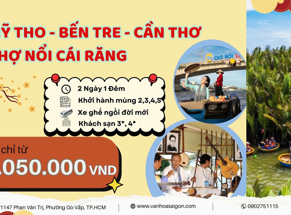 DU XUÂN MIỀN TÂY TẾT 2026 – TRẢI NGHIỆM SÔNG NƯỚC ✨ MỸ THO – BẾN TRE – CẦN THƠ – CHỢ NỔI CÁI RĂNG | 2N1Đ ✨Tết này muốn đi đâu gần Sài Gòn – nhẹ nhàng – không mệt?