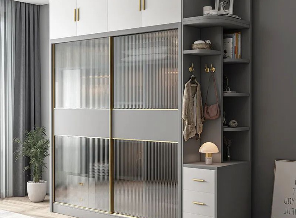 Tủ Quần Áo Cánh Kính Cửa Lùa Màu Trắng Phối Xám
