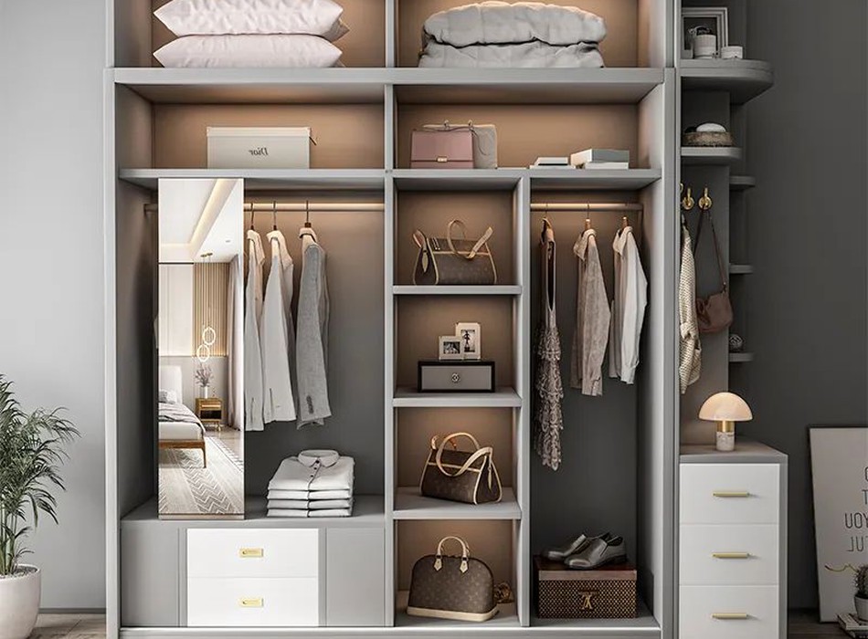 tủ quần áo cửa lùa là các ngăn kệ được bố trí khoa học, giúp sắp xếp quần áo, giày dép và phụ kiện một cách gọn gàng.