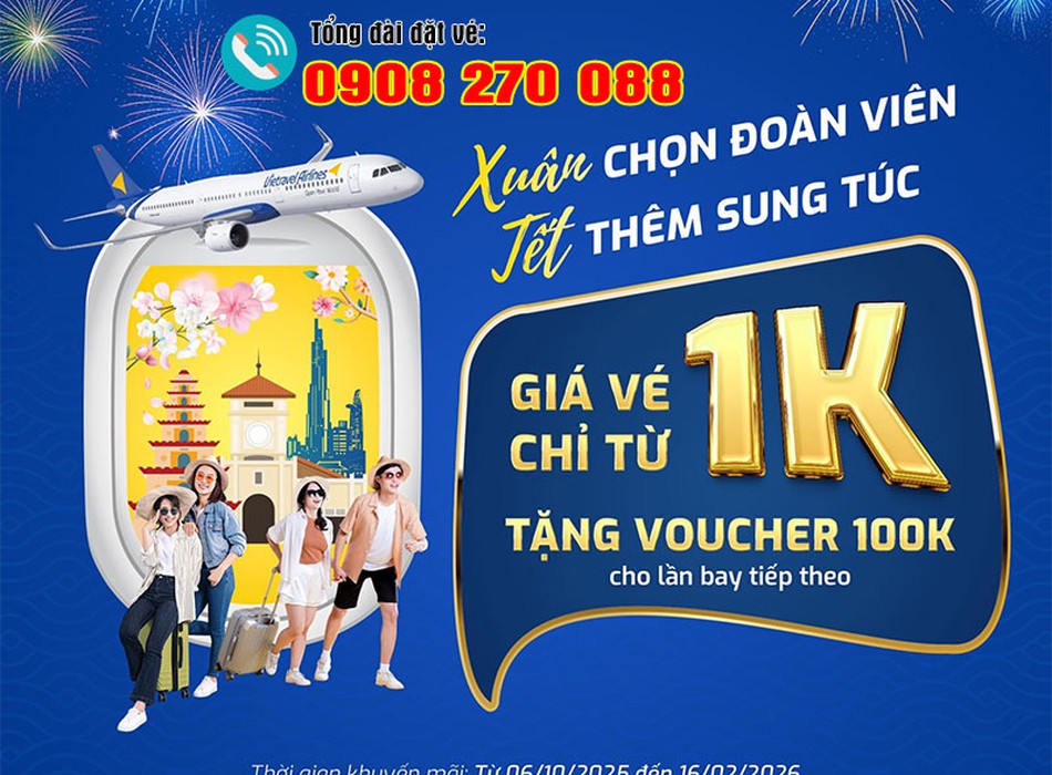 Tết – mùa của yêu thương, mùa của đoàn viên. Dù đi đâu, làm gì, khi Tết đến, trong tim mỗi người Việt đều khắc khoải hai chữ “về nhà”. Thấu hiểu điều đó, Vietravel Airlines mang đến chương trình đặc biệt “Xuân chọn đoàn viên – Tết thêm sung túc”, với giá Vé tết chỉ từ 1K hãng Vietravel Airlines, hành trình về quê đón Tết của bạn trở nên dễ dàng, ấm áp và đầy ý nghĩa hơn bao giờ hết.