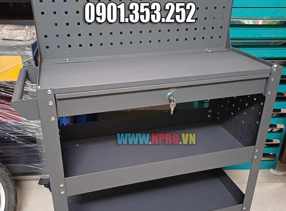 Xe đẩy đồ nghề 3 ngăn cao 81cm, bánh xe lớn dễ dàng di chuyển chịu ma sát đường tốt, là sản phẩm của Npro dành riêng cho người thợ Việt Nam với các lợi ích nổi bật.