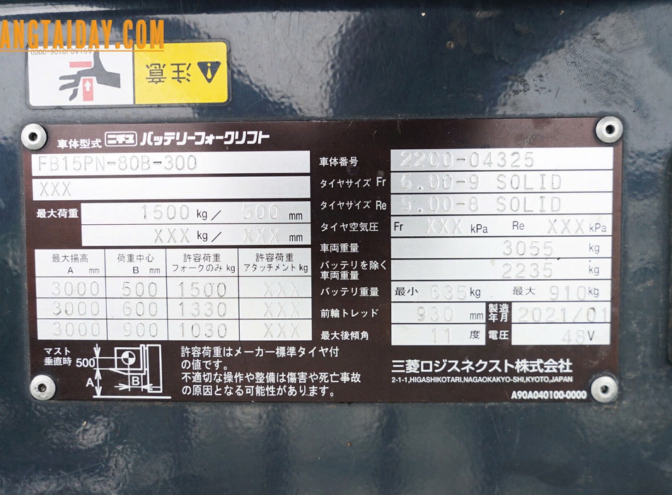 • 1 Xe nâng điện ngồi lái NICHIYU FB15PN-80B-300