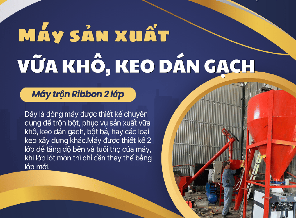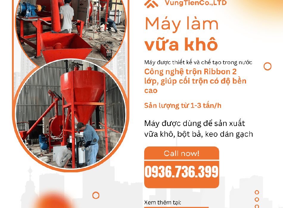 Quý khách hàng quan tâm xin vui lòng liên lạc lại để lấy báo giá chi tiết máy sản xuất vữa khô, keo dán gạch, bột bả.