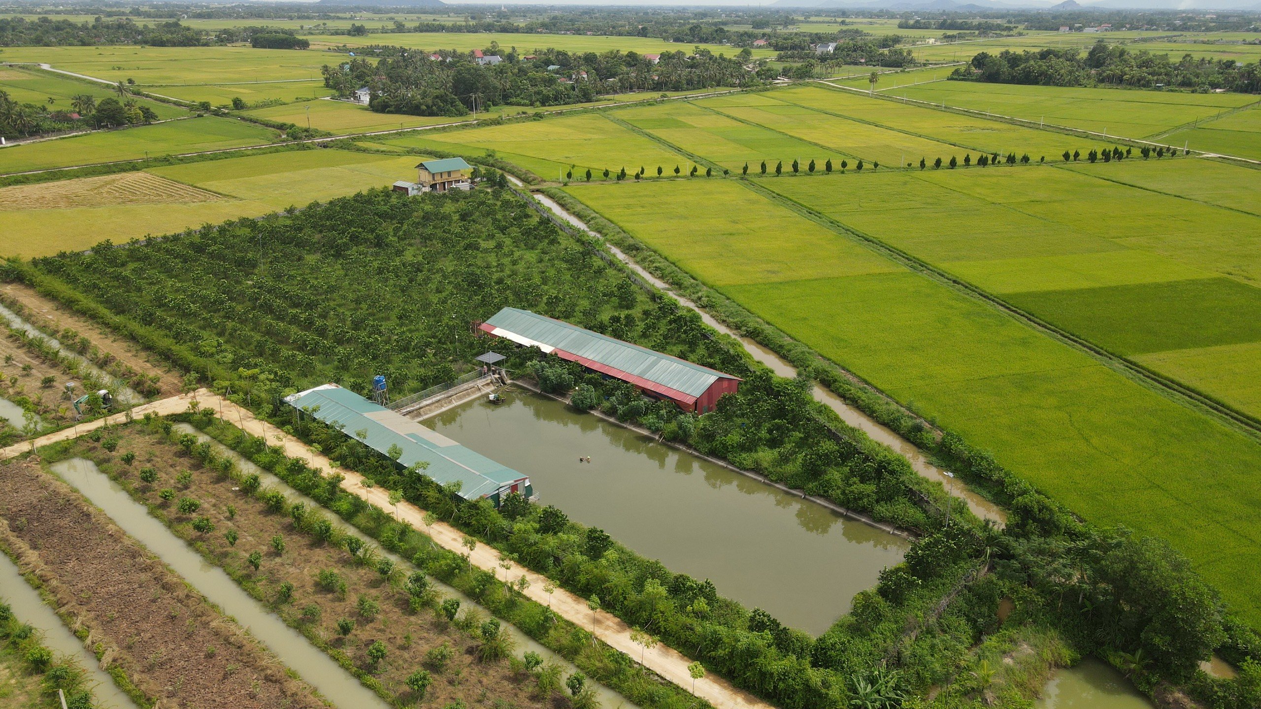 · Trang trại có 700m2 chuồng trại nuôi lợn, gà, vịt và ao cá được xây 3000m2 được kè bê tông cốt thép