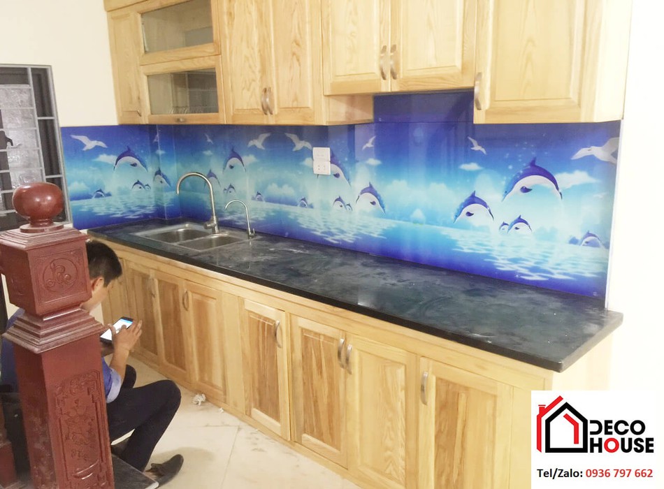 Kính ốp bếp 3D hoa văn Giải pháp decor bếp cực sang