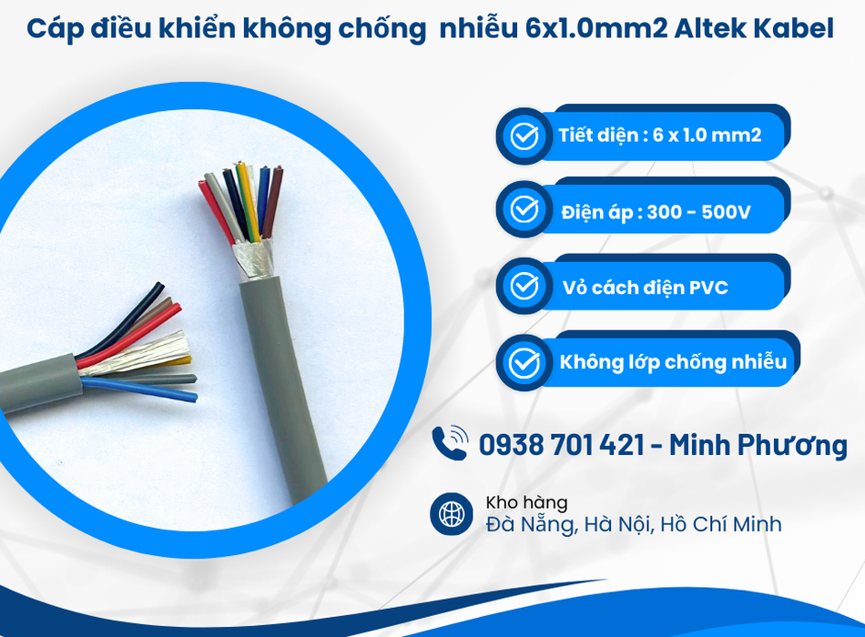 27/02/26 Cáp tín hiệu Altek Kabel không chống nhiễu 6x1.0mm2 Đà Nẵng, Bình Định, Gia Lai