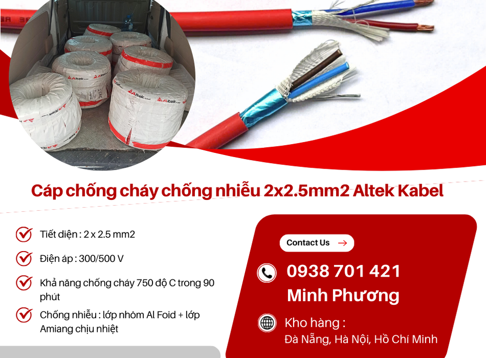 Dây cáp điện chống cháy chống nhiễu Altek Kabel 2x2.5mm2 Huế, Bình Định, Phú Yên