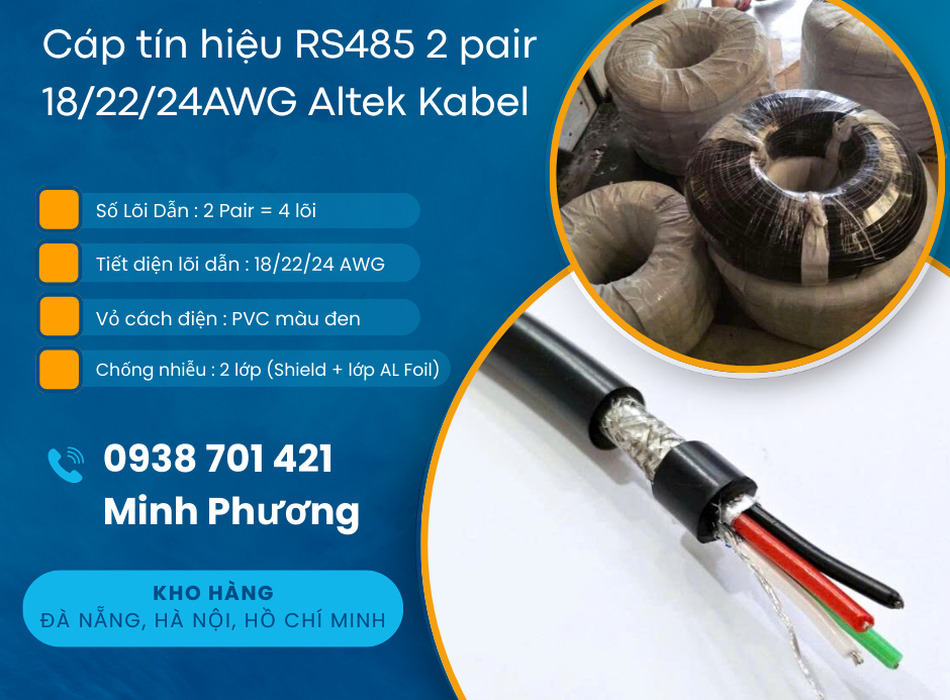 19/03/26 Cáp tín hiệu chống nhiễu RS485 2 pair 18/22/24AWG hàng sẵn, giá tốt, giao toàn quốc