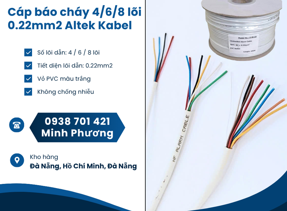 20/03/26 Cáp báo cháy Altek Kabel 4/6/8 lõi 0.22mm2 giá tốt Đà Nẵng, Thanh Hóa, Nghệ An