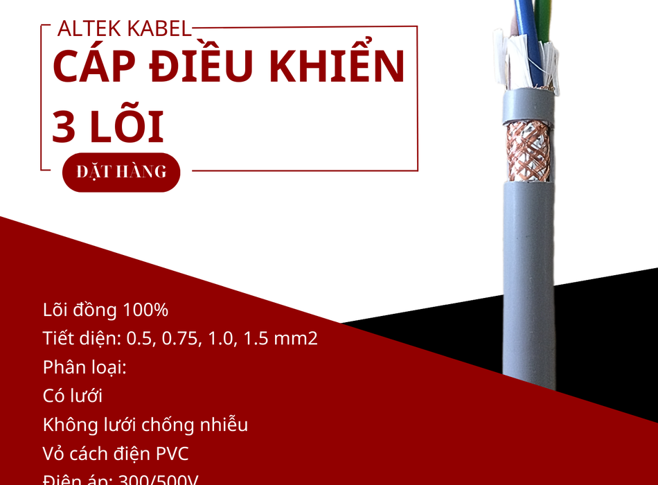 01/04/26 Cáp điều khiển đồng mềm 3 lõi vỏ xám Altek Kabel