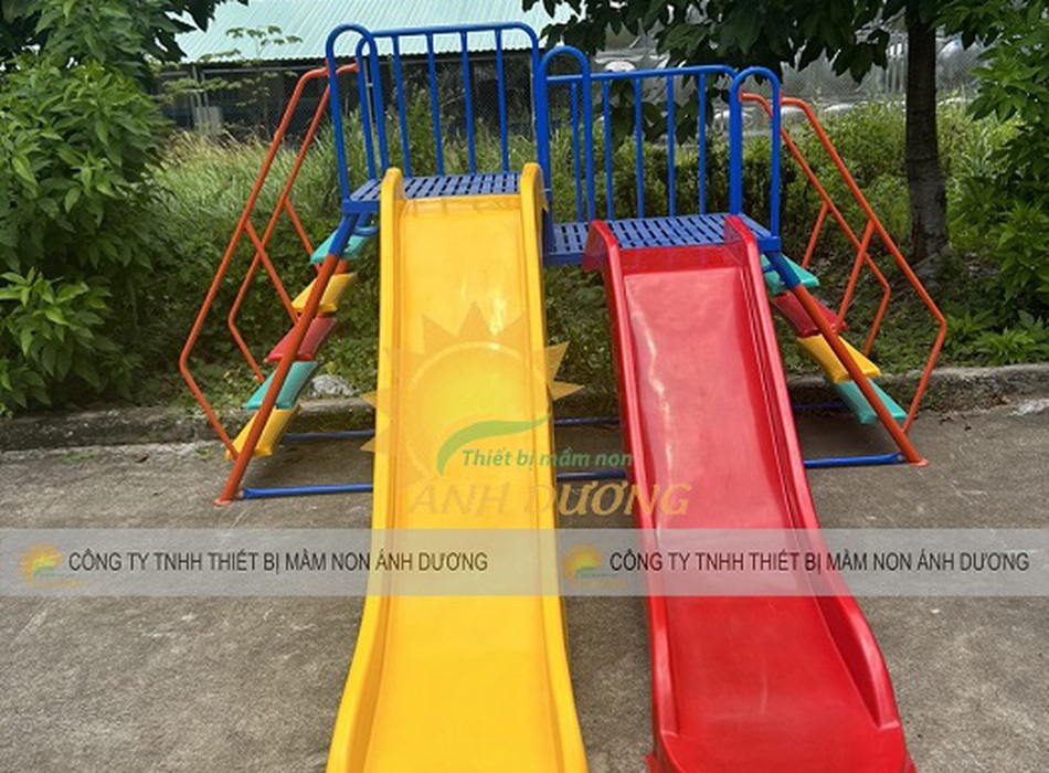 22/11/25 Cầu trượt máng đôi trẻ em, cầu trượt trẻ em 2 máng nhựa