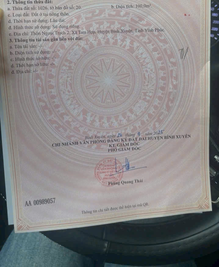 Hot sở hữu ngay lô đất đẹp - giá tốt - vị trí đắc địa tại xã tam hợp, huyện bình xuyên, vĩnh