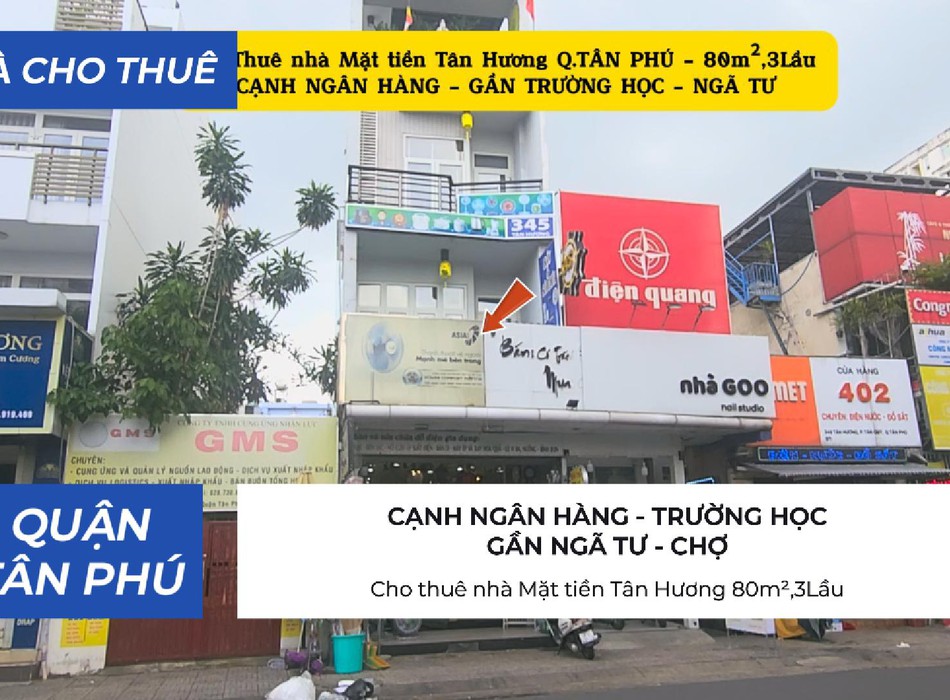 Cho thuê nhà mặt tiền tân hương 80m ,3lầu, 25triệu - cạnh ngân hàng - ngã tư
