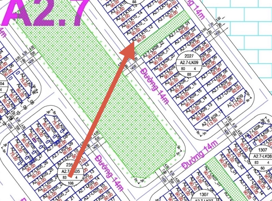 Bán lô a2.7 lk10-12 dt 90m2 đường 14m lô góc nhìn vườn hoa 2 mặt thoáng. hướng tây...