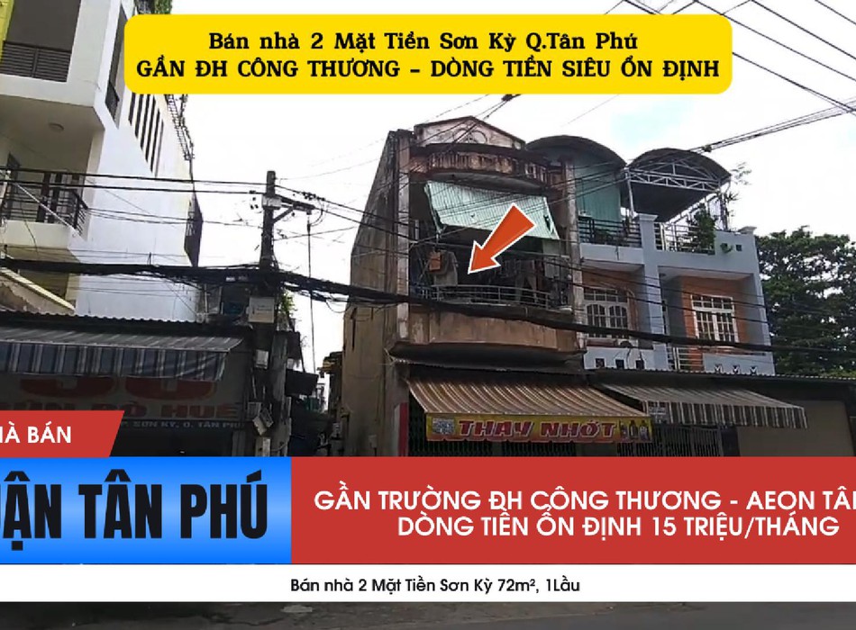 Bán nhà 2 mặt tiền sơn kỳ 72m , 1lầu - gần đh công thương