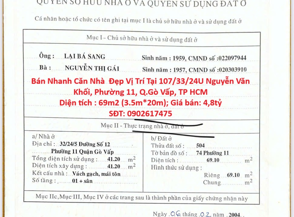 Giá tốt - chính chủ cần bán nhanh căn nhà đẹp vị trí tại quận gò vấp, tp hcm...