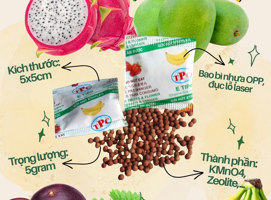 Gói hút Ethylen Thịnh Phong ngăn chặn trái cây chín sớm , giữ tươi lâu hơn