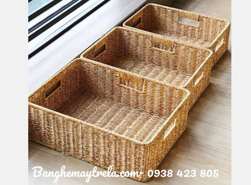 Khay mây nhựa để đồ hình chữ nhật