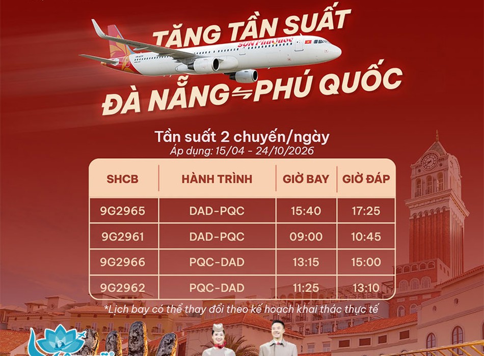 Tăng tần suất Đà Nẵng Phú Quốc, linh hoạt giờ bay hè 2026