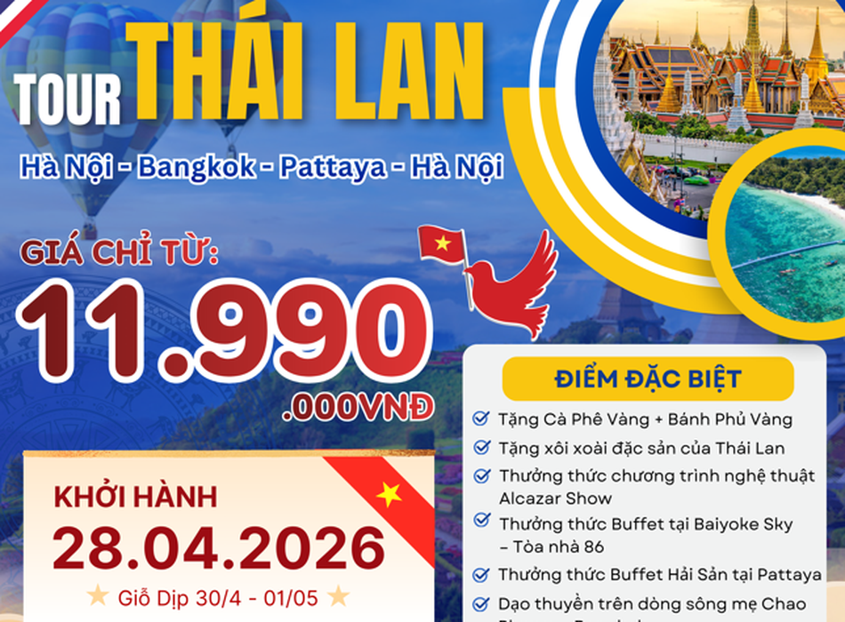 Chỉ 11.990K THÁI LAN gọi Lế 30/4 - 1/5 đi ngay