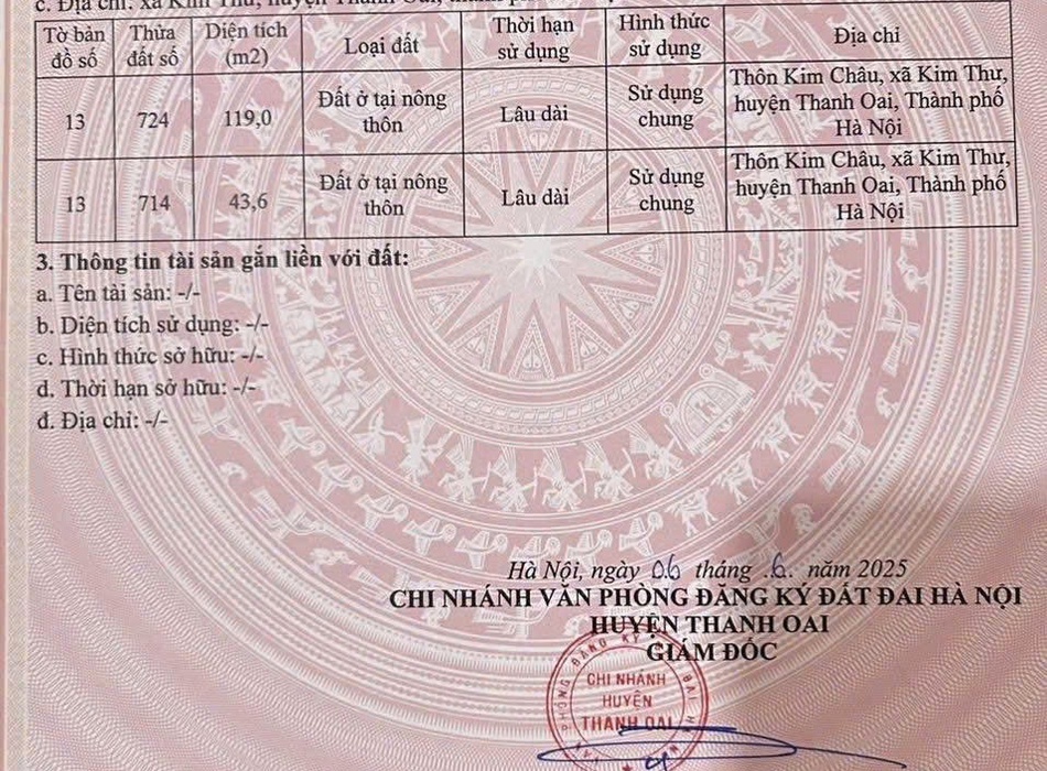Bán lô đất thổ cư kim châu, kim thư, thanh oai, hà nội . otô vào nhà, dt 43,6 lô...