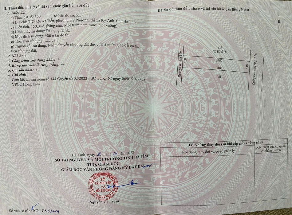 Chính chủ bán 150m2 đất odt sổ hồng ngay đường tránh mặt tiền ql1a-kỳ anh-hà tĩnh