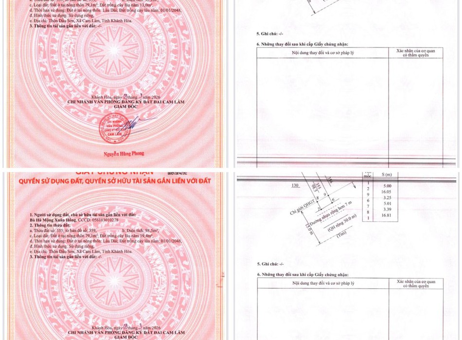 Chính chủ cần bán 02 lô đất mặt tiền ql1a thôn dầu sơn - xã cam lâm - khánh hoà...